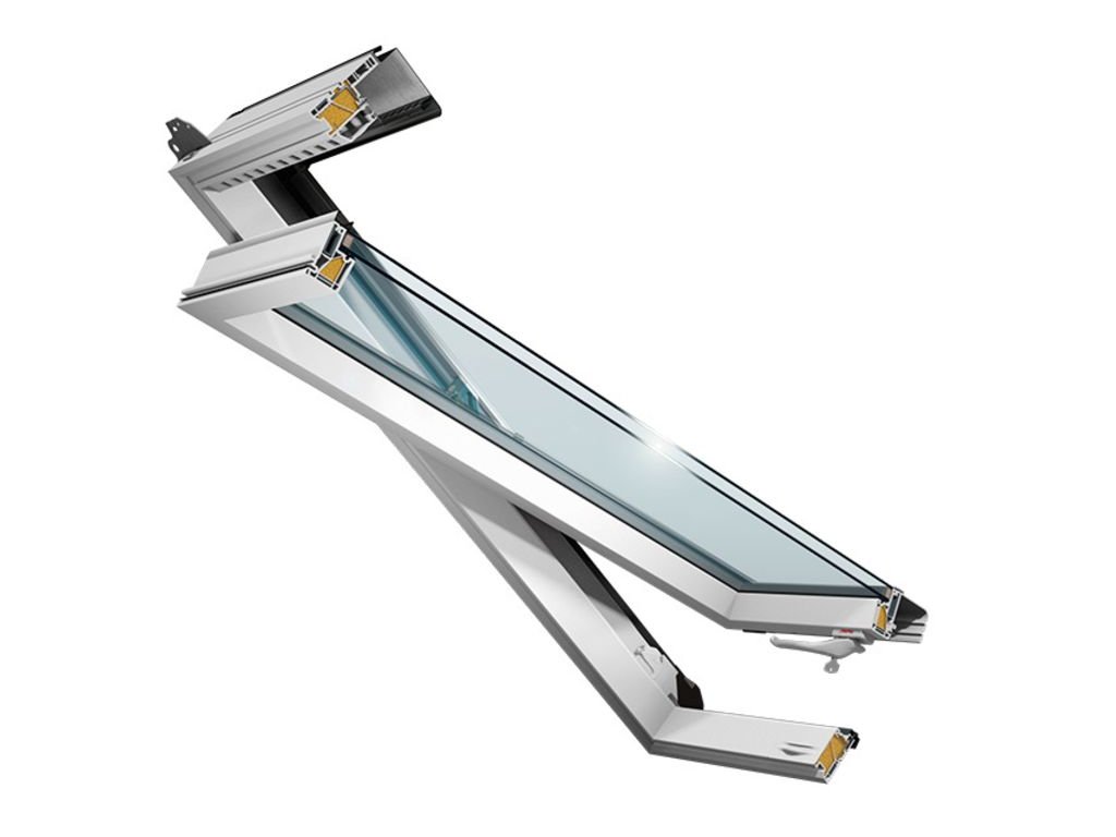 Kyvné plastové střešní okno určené k instalaci na střechu se sklonem 15 až 90 stupňů. Vhodné do místností s vyšší vlhkostí.